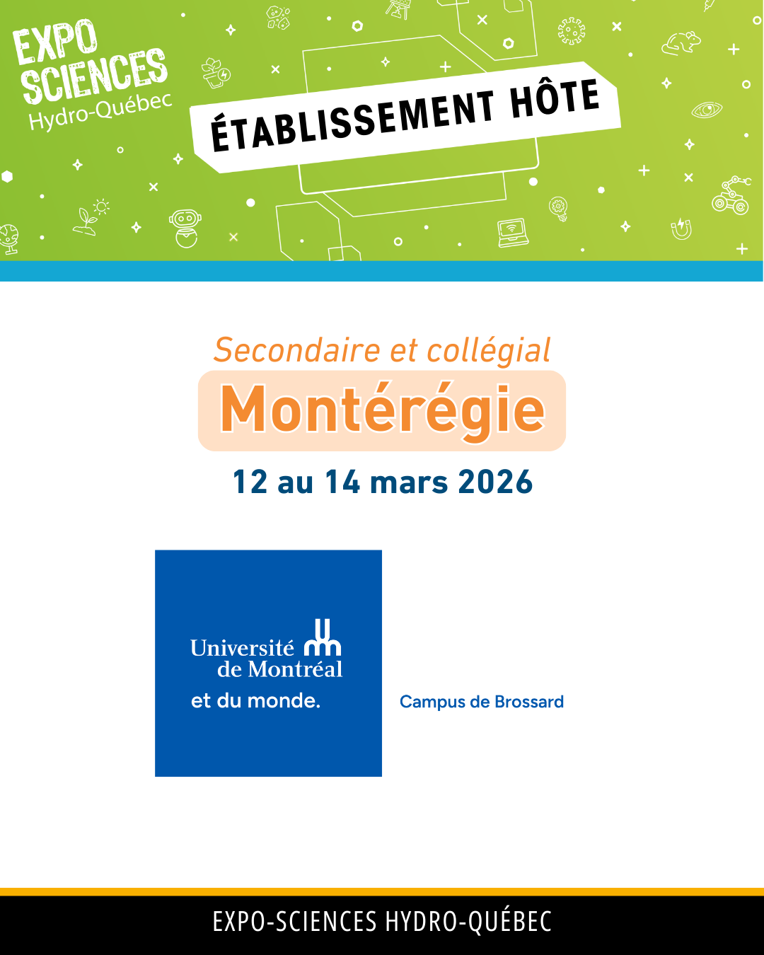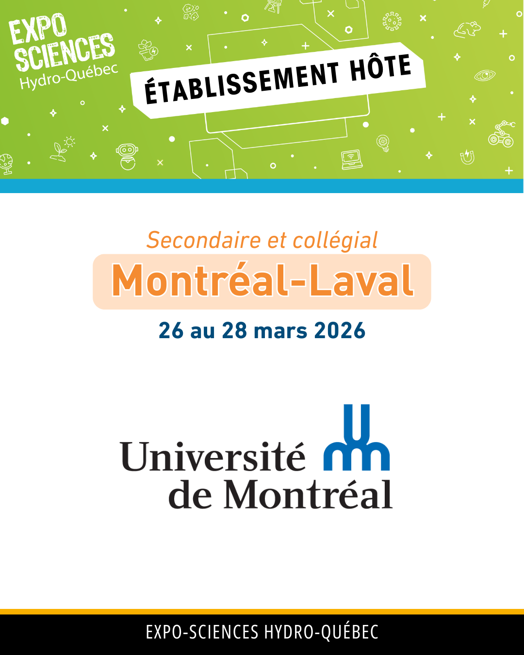 Please note that all Expo-sciences Hydro-Québec projects presented in English must be registered with the Educational Alliance for Science & Technology (EAST) at the link below, remembering to select Montreal Regional Science & Technology Fair — English.
